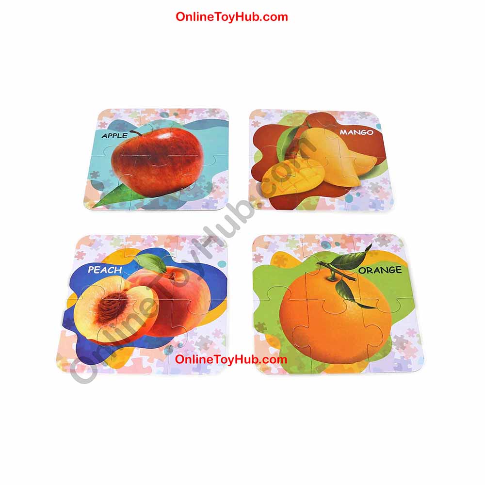 The puzzle comes with a set of 24 jigsaw puzzle pieces from which 4 fruits. The product not only helps in enhancing the hand-eye coordination but also forms a strong base for their cognitive development by improving their vocabulary. Also fostering the concept of gestalt thinking, i.e., understanding the concept of things as a whole, when the children put various pieces together to form an animal picture. It is proven that children learn better through visual content, hence the colourful pictures helps them in fostering the concept of colours and picture recognition and building their motor skills stronger. The children could also learn the numbering system with the number of pieces provided in the set. The puzzle pieces are made of non-toxic material and comes in compact sizes making them easier to hold for children.