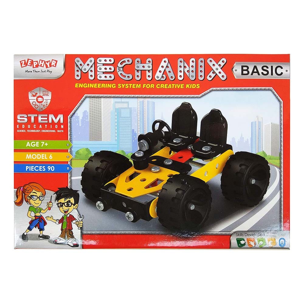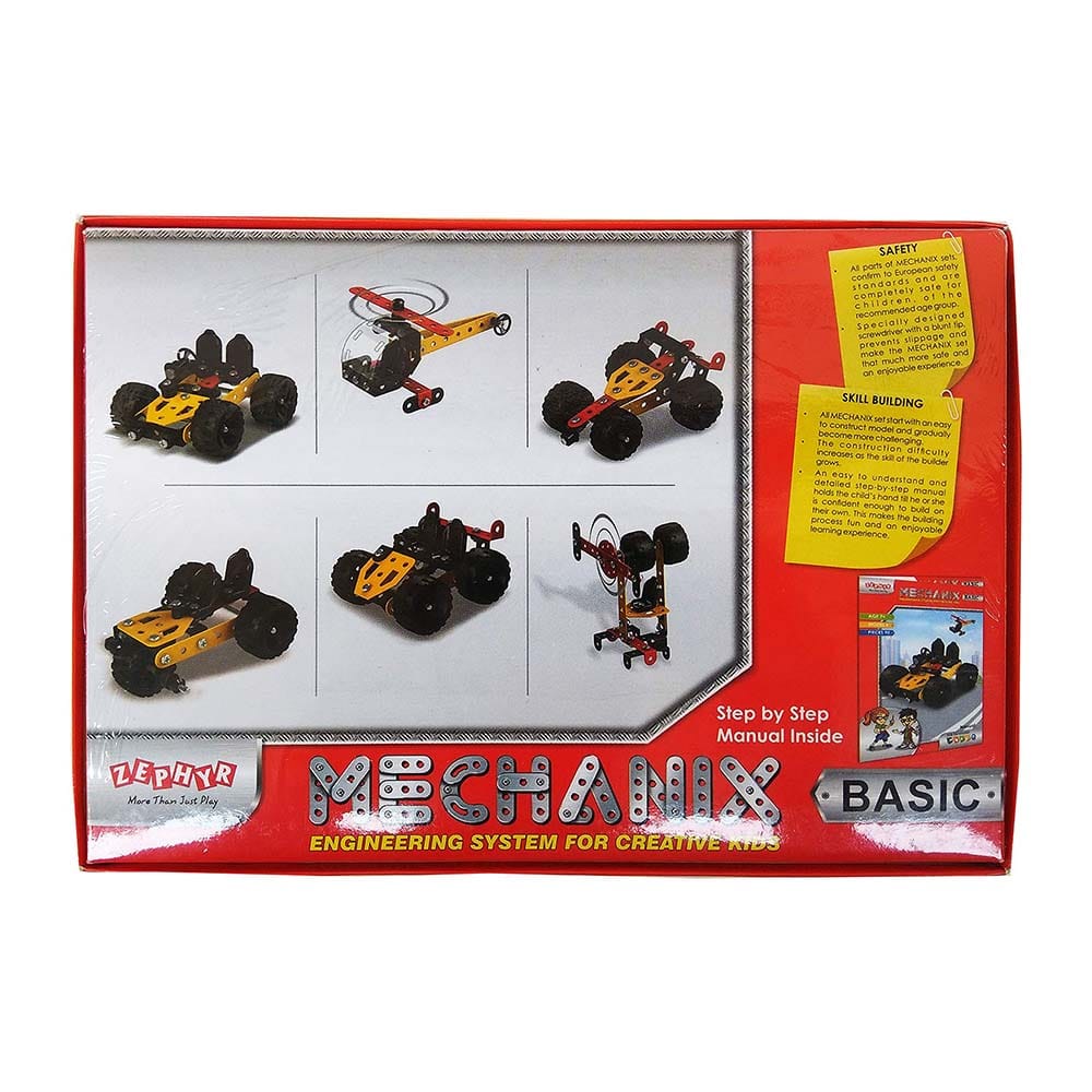 Learn the art of designing and construction through creative play. The box contains 90 pieces of versatile and reusable parts to give your child endless hours of fun. This mechanix series helps your child being creative, improves dexterity, reasoning and knowledge. This Kit Comes With All The Tools, And Parts To Build 6 Different Models, One At A Time. After Completing These 6 Models, The Builder Can Use The Nuts Bolts.