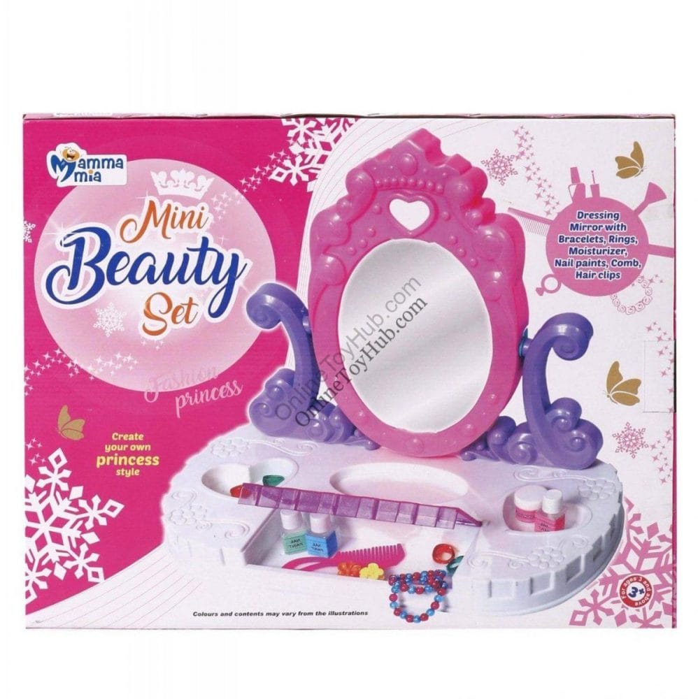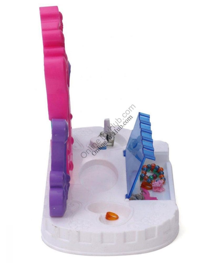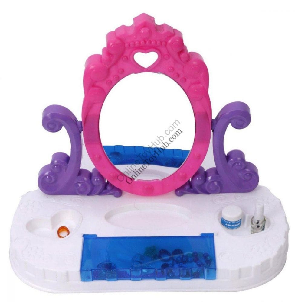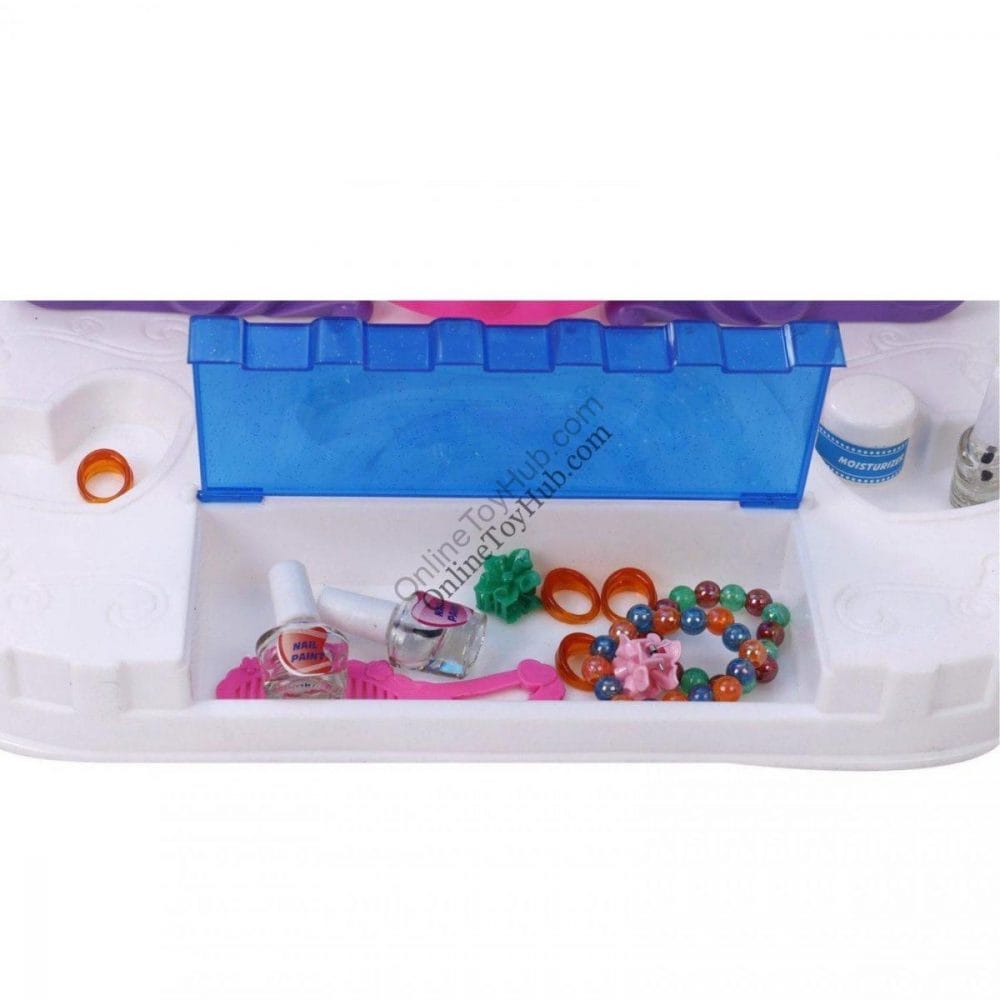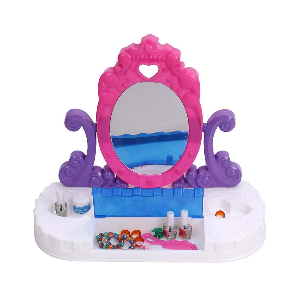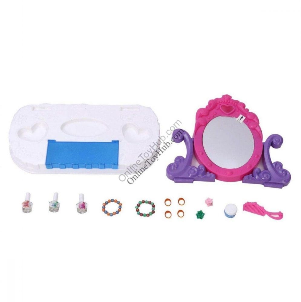 Including 1 Comb, 1 Moisturizer, 2 Bracelets, 2 Hair clips, 1 Dressing Mirror, 3 Nail polish, 4 Rings And 1 Base
